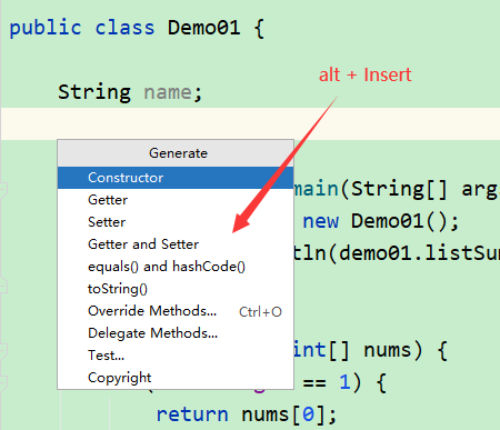 // alt + Insert