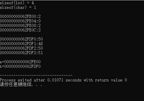 printf("%p: %c\n", &b[i][j], b[i][j]);