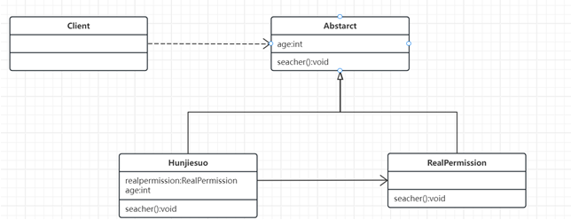 public class Hunjiesuo implements Abstract{ private RealPermission permission=new RealPermission(); public void seacher(int age){ permission.seacher(age); } }