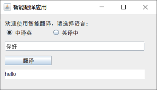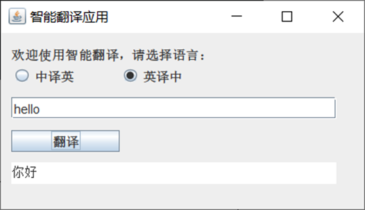 任务四:完成百度翻译GUI相关功能代码并测试调用,要求可以实现中文翻译成英文,英文翻译成中文(占30%)。