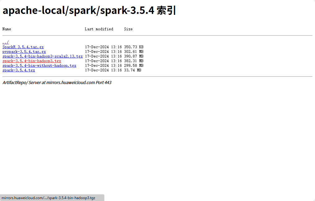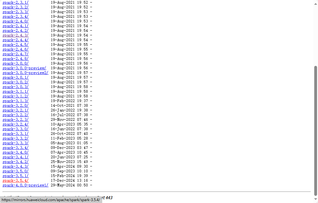 华为镜像: https://mirrors.huaweicloud.com/apache/spark/ 效果图: