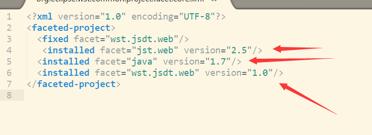 3、在文件夹下打开org.eclipse.wst.common.project.facet.core.xml 文件