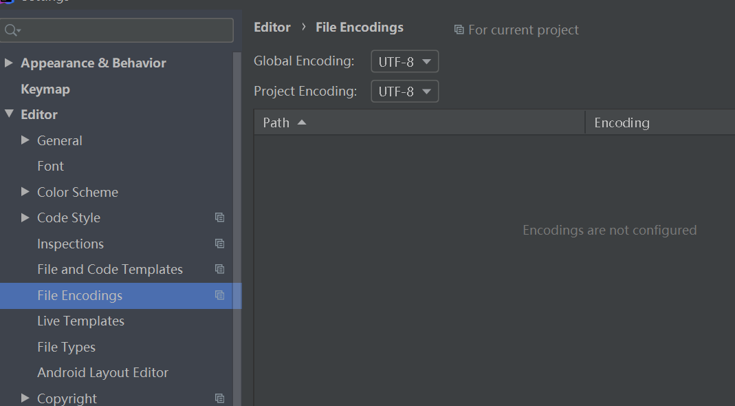 3、在idea中打开File->Settings->Editor->File Encodings