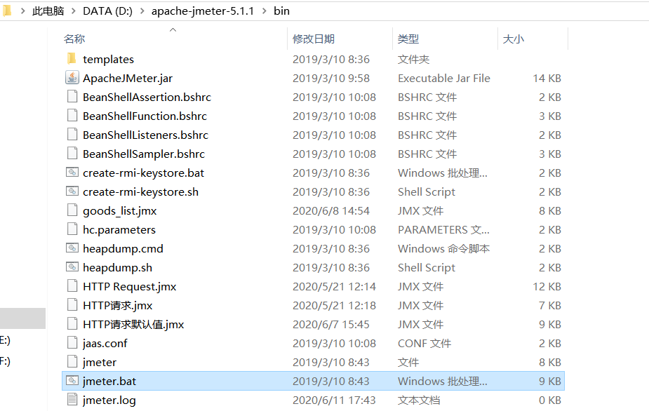 进入jmeter文件夹,点击bin目录下的jmeter.bat