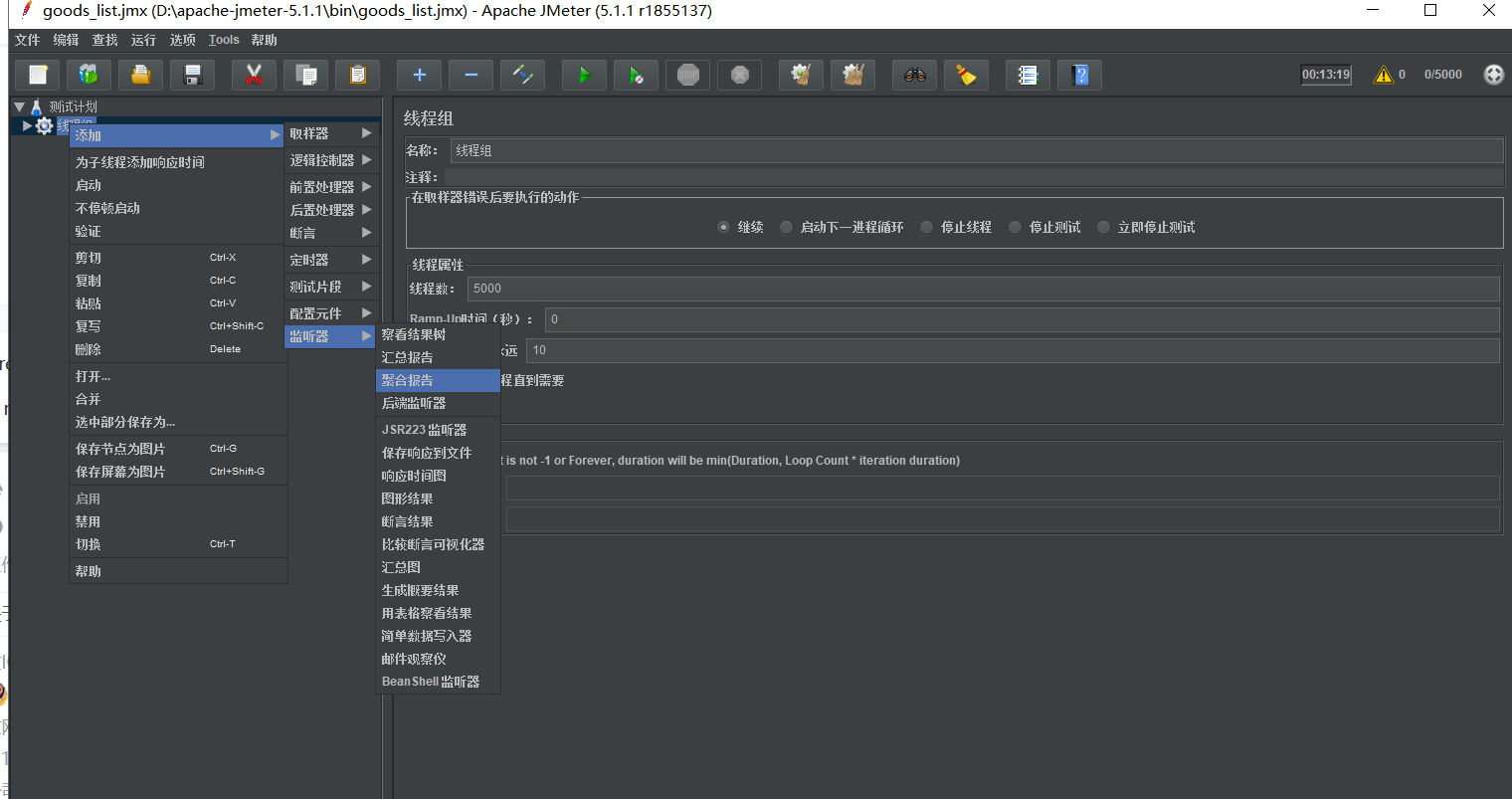 4、添加聚合报告查看输出结果