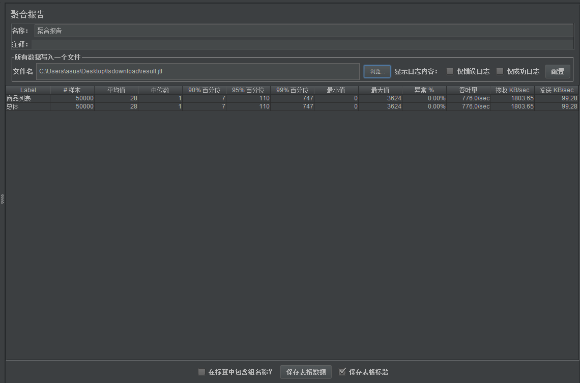 在聚合报告中打开浏览选择result.jtl查看结果
