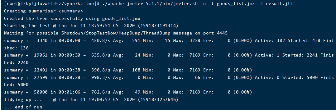 2、命令行:sh jmeter.sh -n -t xxx.jmx -l result.jtl