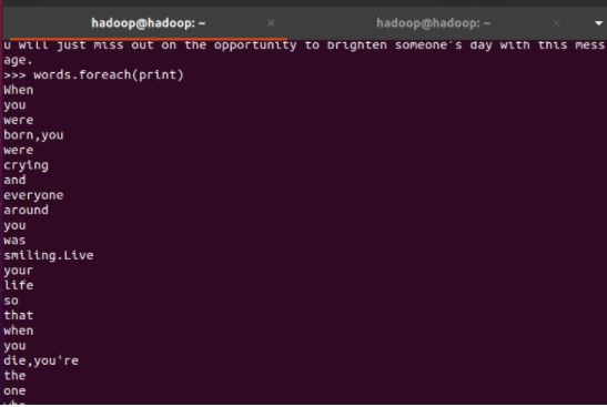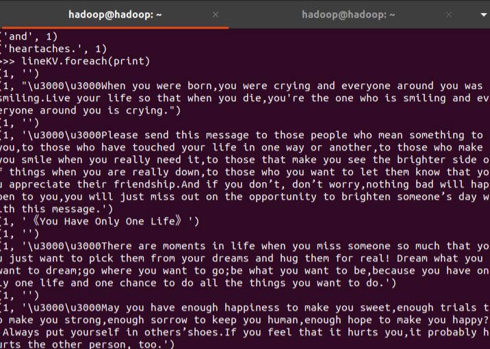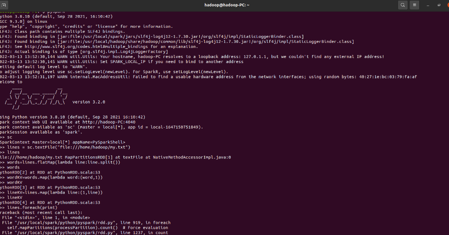 3.在PySparkShell尝试以下代码,观察执行结果,理解sc,RDD,DAG。请画出相应的RDD转换关系图。