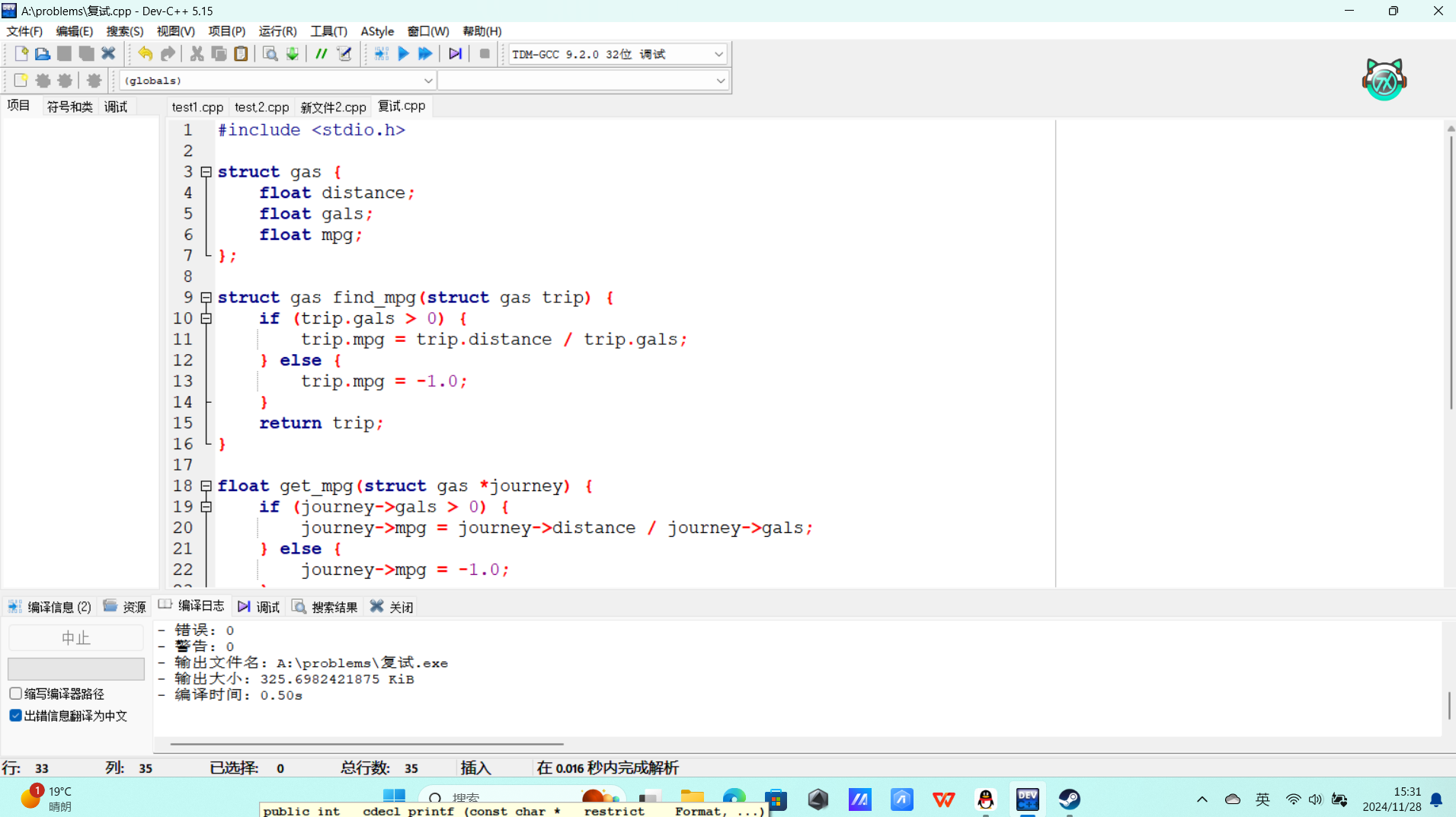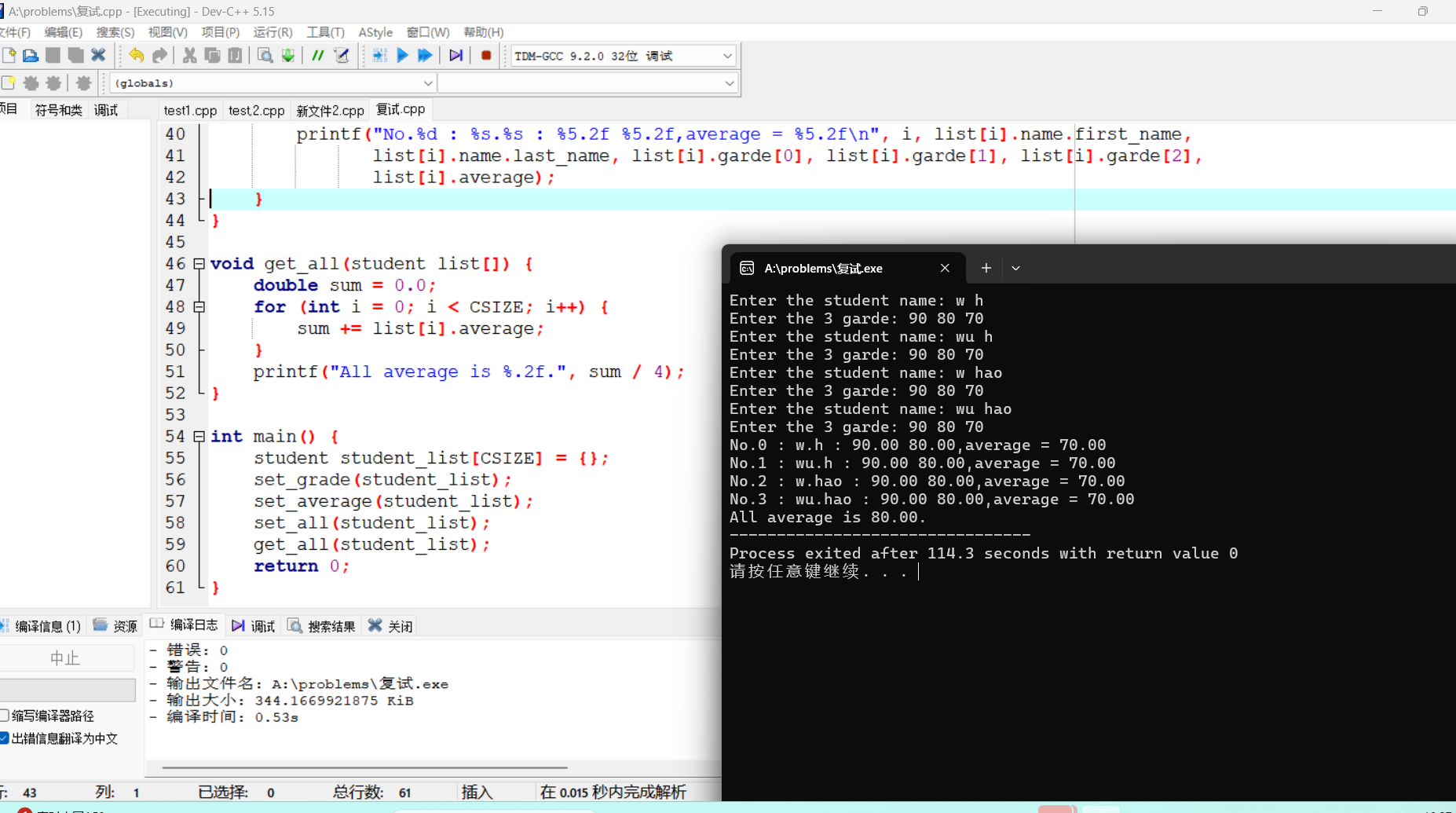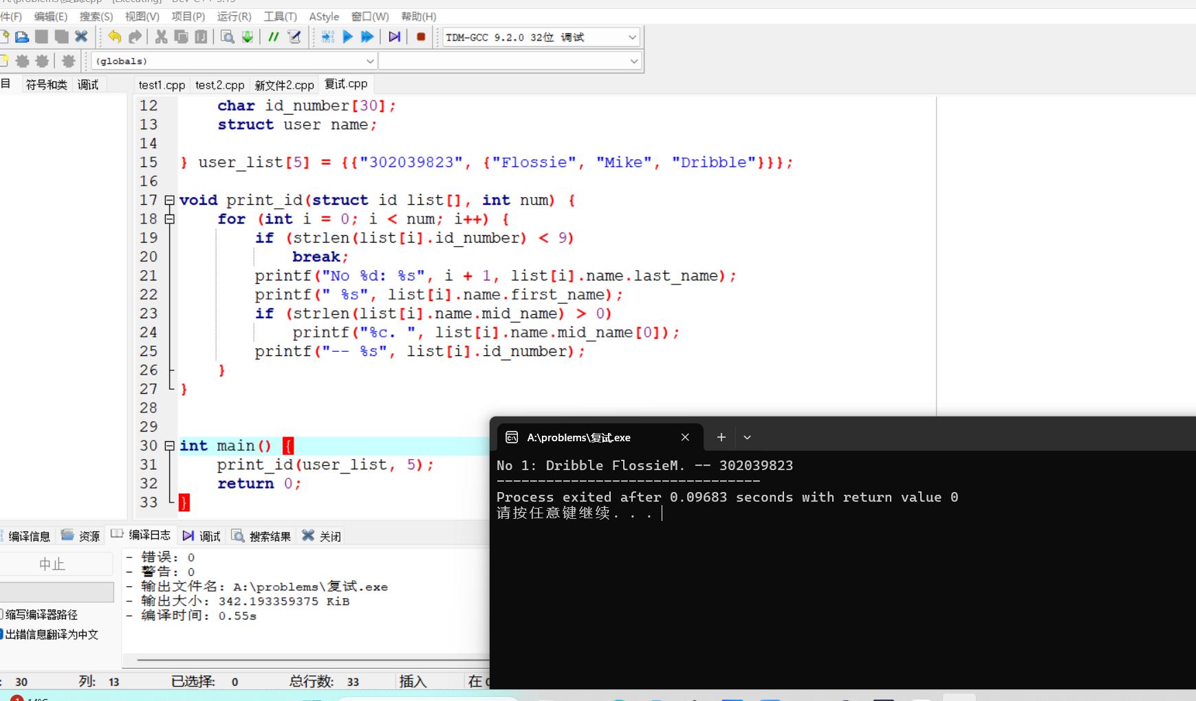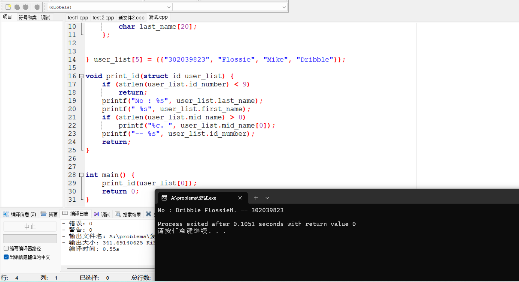 问题:第二题在首次编写过程中的第一个strcut结构体在第二个struct结构体的外面,导致后续函数的引用时出现问