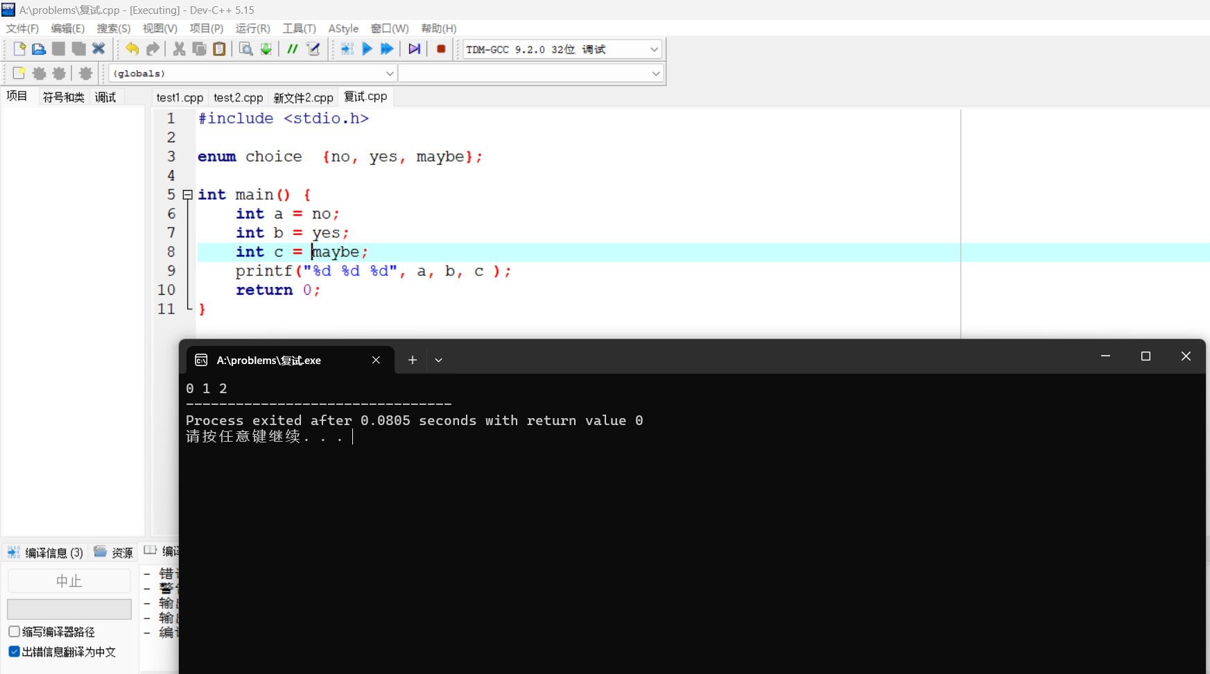 问题:在编写过程中交互过程中的scanf交互不成功,后来查询网络知道少了一个&符号。