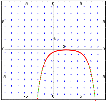 - (%i1) plotdf(exp(-x)+y,[trajectory_at,2,-0.1])$