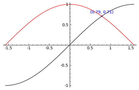 sage: find_root( sin(x) == cos(x),-pi/2, pi/2 )
