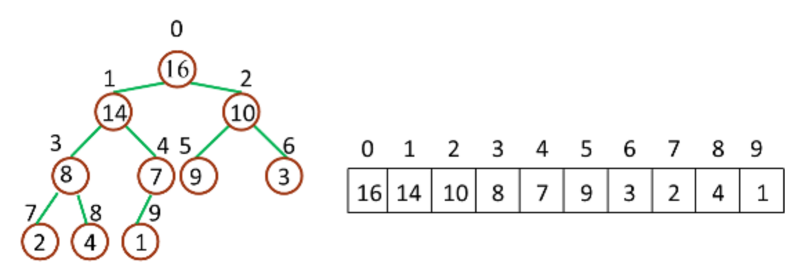 堆就可以视作一棵完全二叉树。由于完全二叉树的性质,堆可以用数组来表示(普通的树是用链表来存储)。