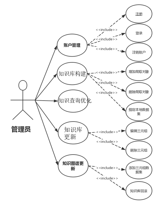 账号管理,知识库构建,知识搜集管理,知识库更新,知识查询优化