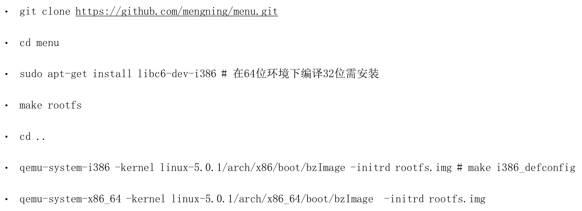 - 通过本地Linux系统或实验楼在线环境完成构建调试Linux内核网络代码的环境MenuOS系统