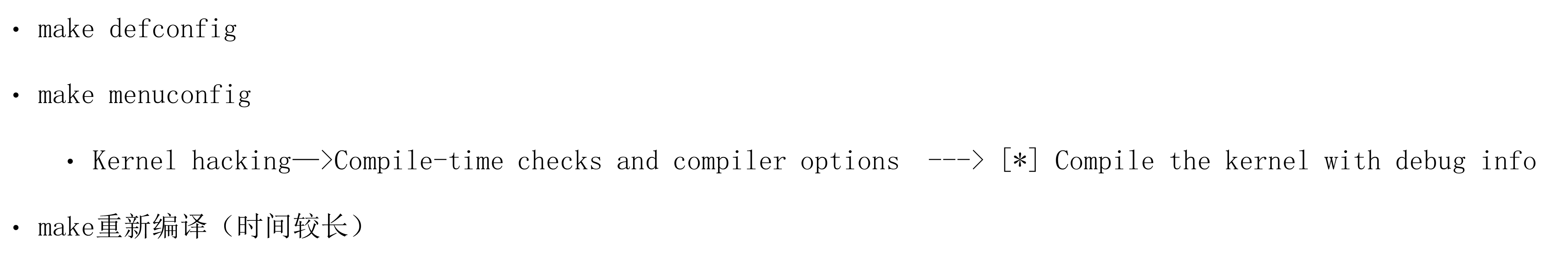 Kernel hacking -> Compile-time checks and compiler options -> Compile the kernel with debug info (此处用y勾选,之后保存退出)