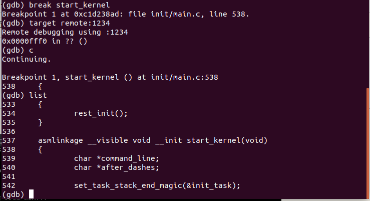 - 截图证实通过gdb可以跟踪到内核代码,比如start_kernel、sys_socketcall等内核函数