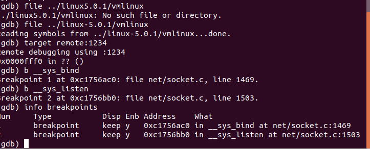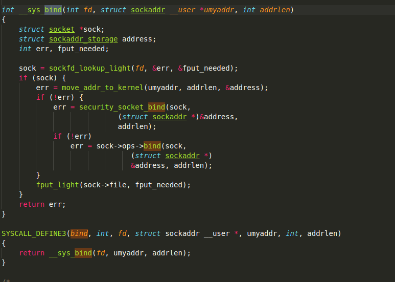 下面我们以前面讲过的bind()函数为例用gdb分析追踪socket接口的内核处理函数: