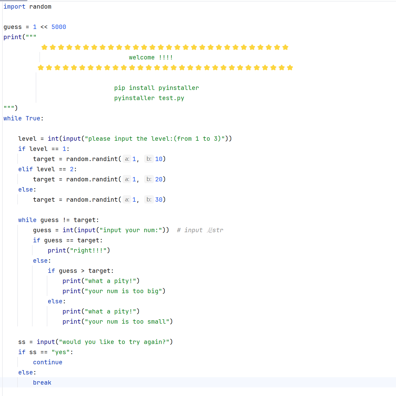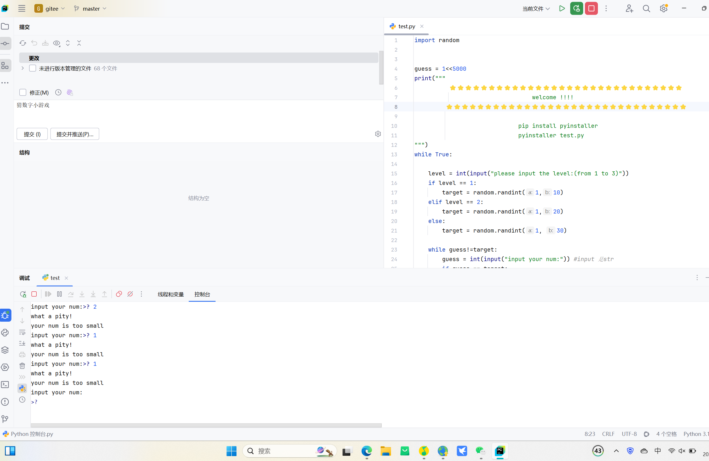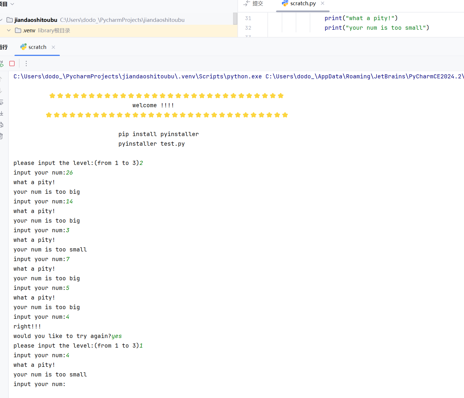 3.编写程序,练习变量和类型、字符串、对象、缩进和注释等;(编写一个猜数字或者剪刀石头布的游戏)
