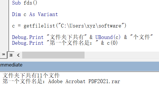 Debug.Print "文件夹下共有" & UBound(c) & "个文件"