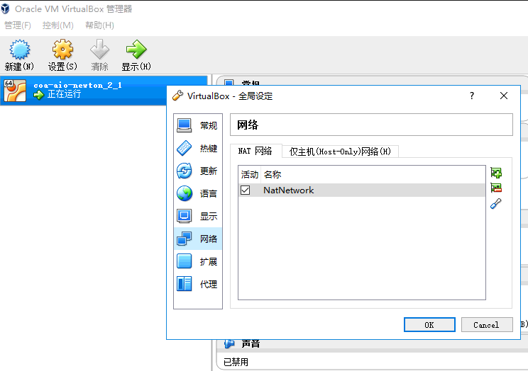 遇到问题1:VirtualBox中网络只有一个“仅主机(Host-Onlu)网络(H)”。教程中明明有“NAT网络”+“仅主机(Host-Onlu)网络(H)”。多方搜索,确认virtual box改版。更换到5.1.36正常