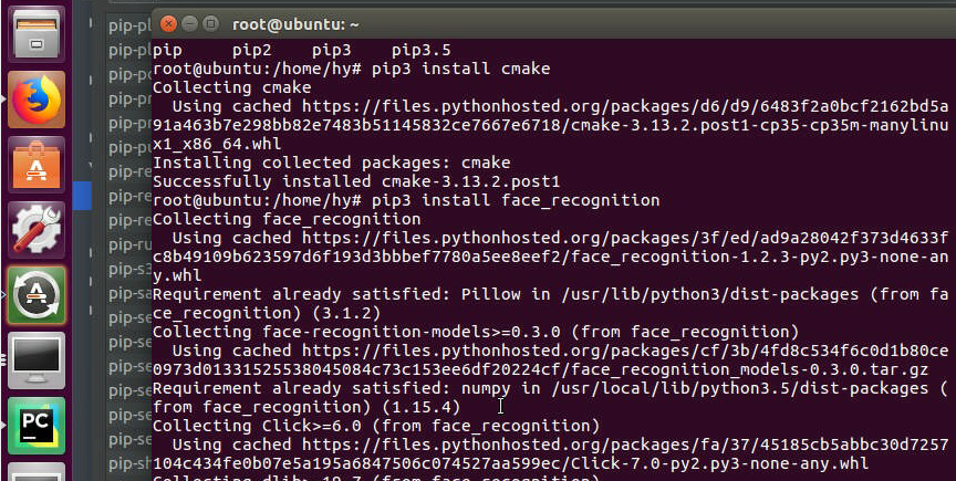 最开始是win10+pycharm,安装没搞定什么cmake ,dlib,face_recogniton库。尝试在虚拟机ubuntu中可以正常安装