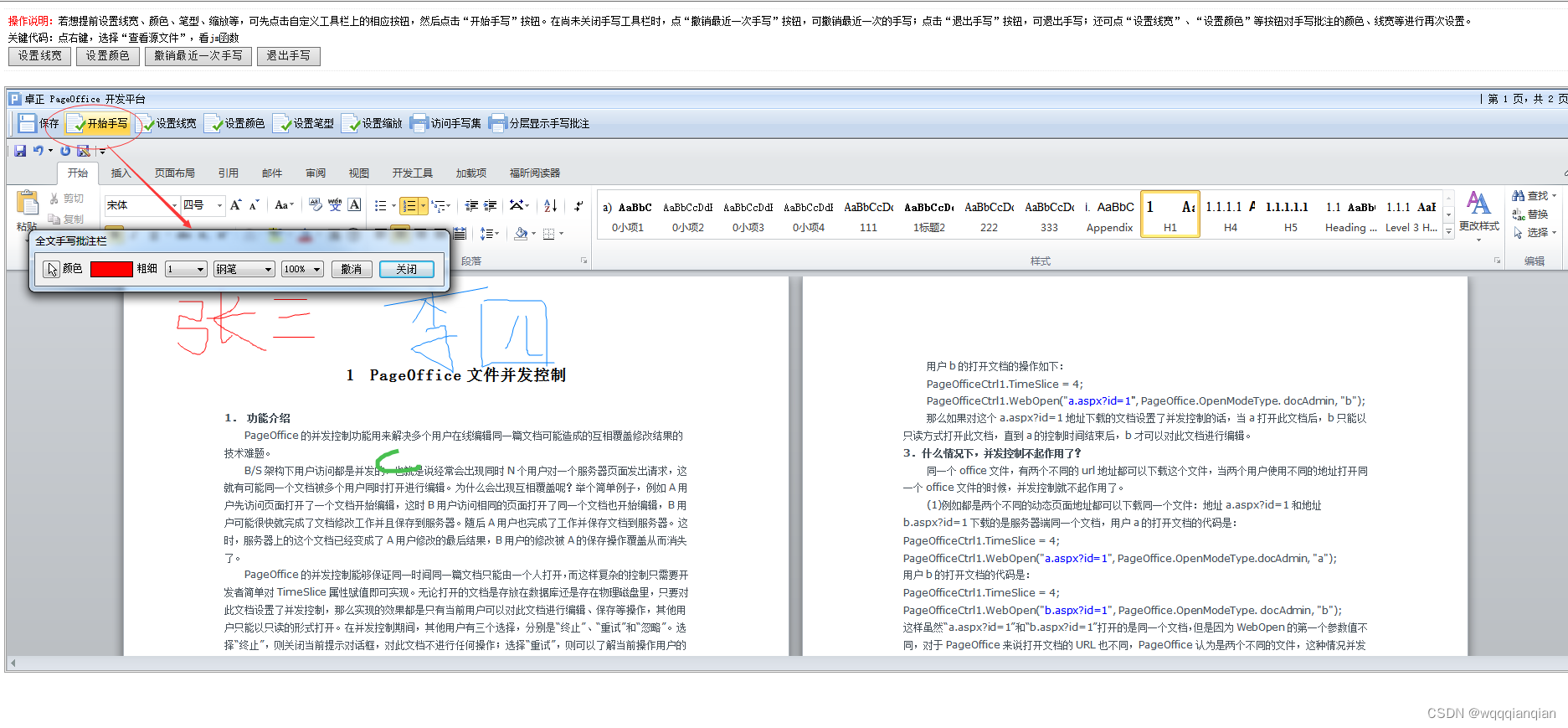 近年来,许多政府部门实施办公自动化系统,随着新需求,新产品的出现,其内涵也在不停地更新与发展,从简单文件,图档数字化,电子信件的广泛采用以及协同工作,进而发展到运用现代网络信息技术,使其内涵得到一次次的更新与扩展。但并不是所有的OA系统都得到了很好的应用,在没有手写签批的OA系统中,无法真正实现无纸化办公,反而形成了半自动化,半手工的流程。为了真正实现办公的自动化,无纸化,PageOfice开发出来了在线对office文档的手写签批功能。采用PageOffice的手写技术,就可以使无纸化办公在更多场合显得简单易用,更符合人们圈阅,签批的习惯,大大方便了喜欢使用纸笔的用户。