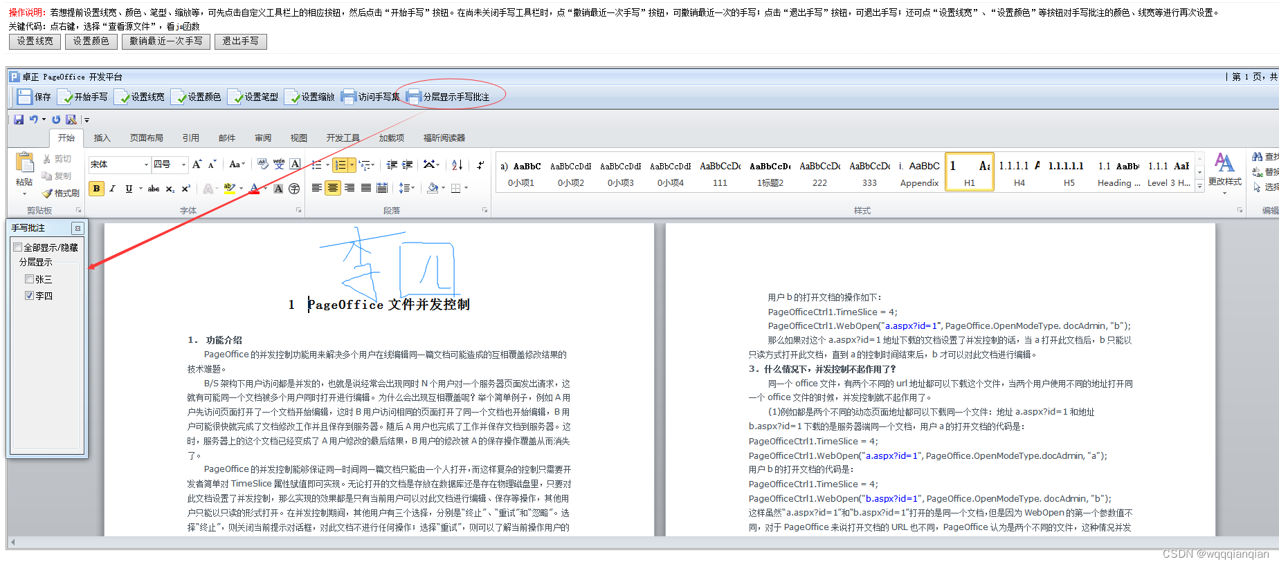 //显示“分层手写批注”工具栏,在工具栏上显示所有做过手写批注的批注者的用户名。