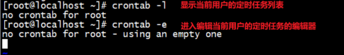 - l:显示当前用户所有的定时任务机