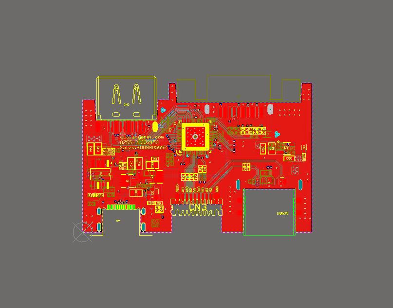 CS5268 设计四合一Type-C转HDMI+VGA+PD+U3 PCB板框和元器件如下: