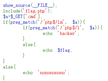 这里是preg_match可以用%0a进行绕过,payload:?cmd=flag.%0aphp