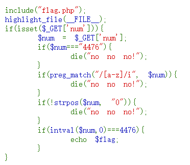 这里不能用其他进制进行表示了,所以看strpos(),是返回目标字符串在原字符串中第一次出现的位置,这里不能让0出现的位置为0,所以可以用intval()可以把浮点数转换为整数的特性来绕过。