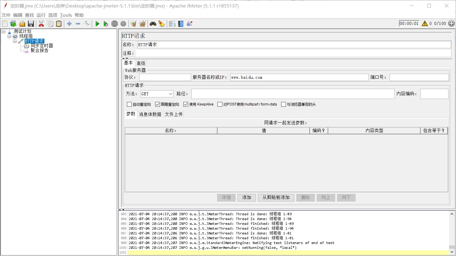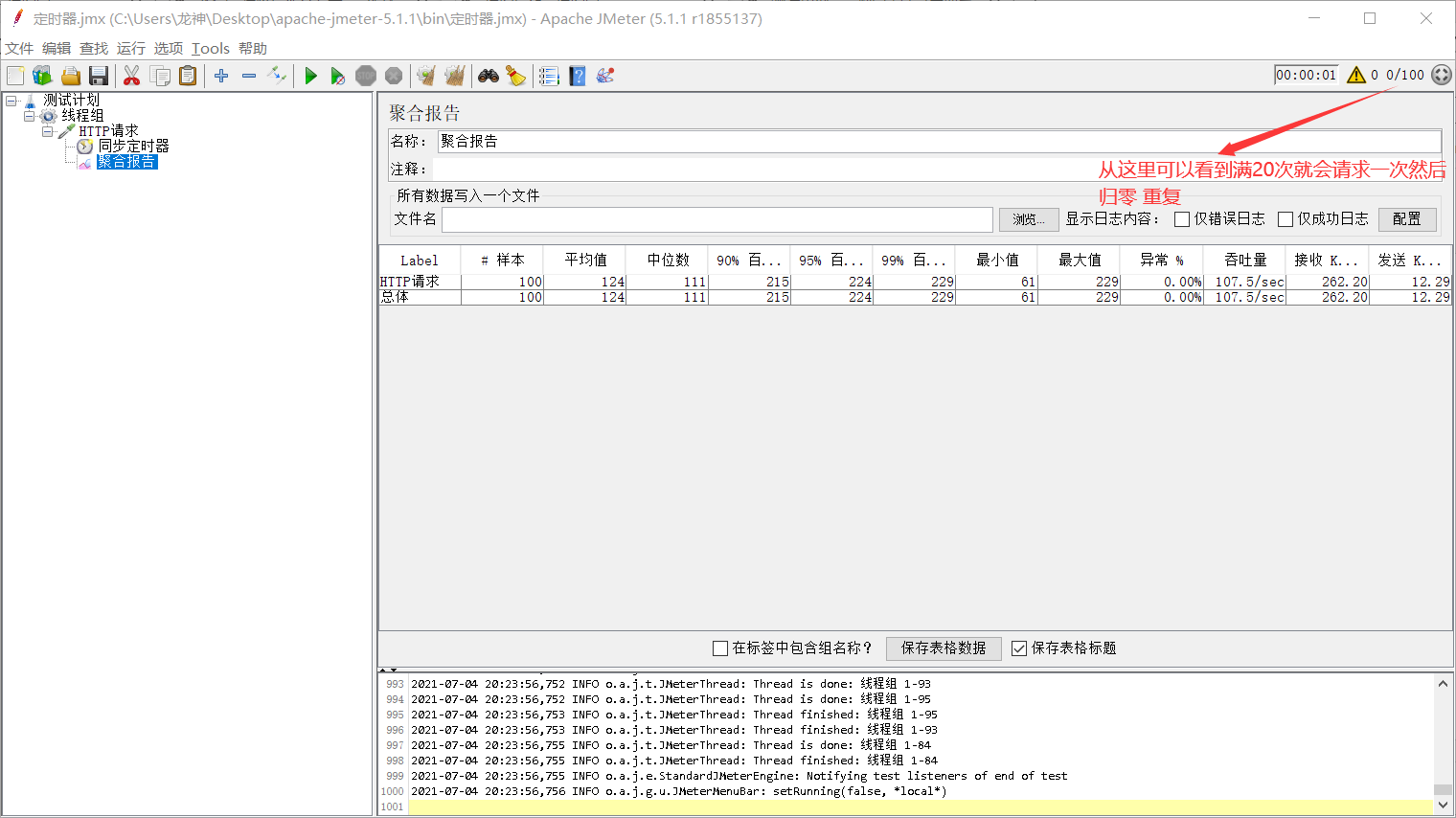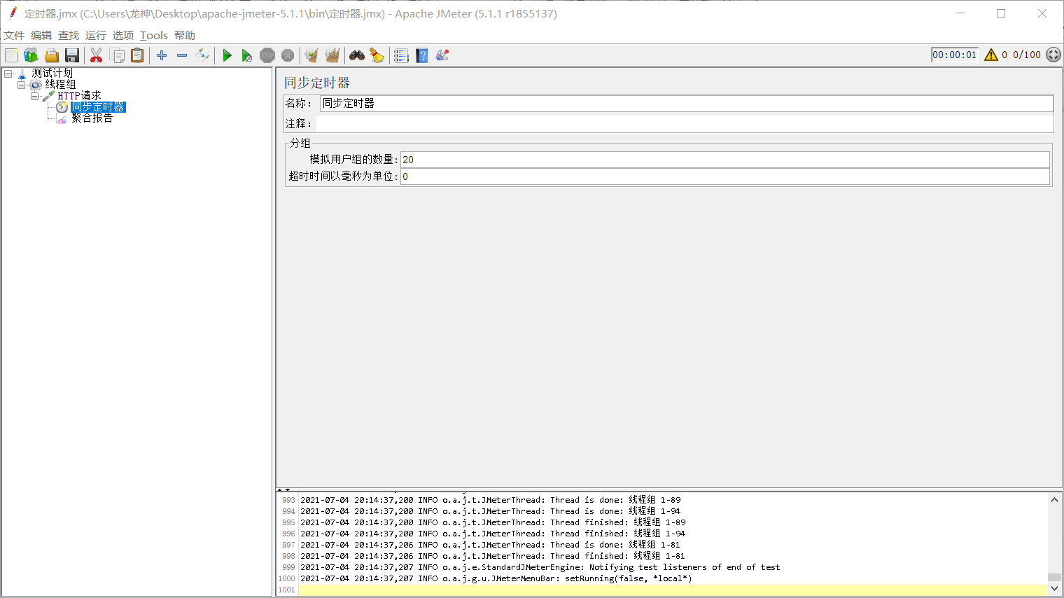 我们如果不开启同步定时器的话 执行一百次请求 它会一次一次进行访问 那么如何做到一次性让多个请求同时请求服务器呢