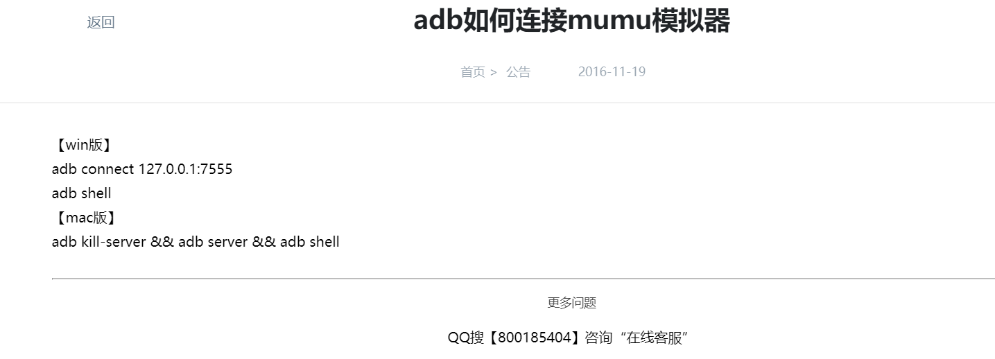 adb connect 127.0.0.1:7555 这个命令是Windows链接网易MuMu管理器的