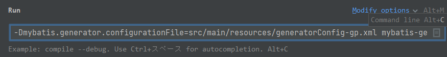 -Dmybatis.generator.configurationFile=src/main/resources/generatorConfig-test.xml mybatis-generator:generate
