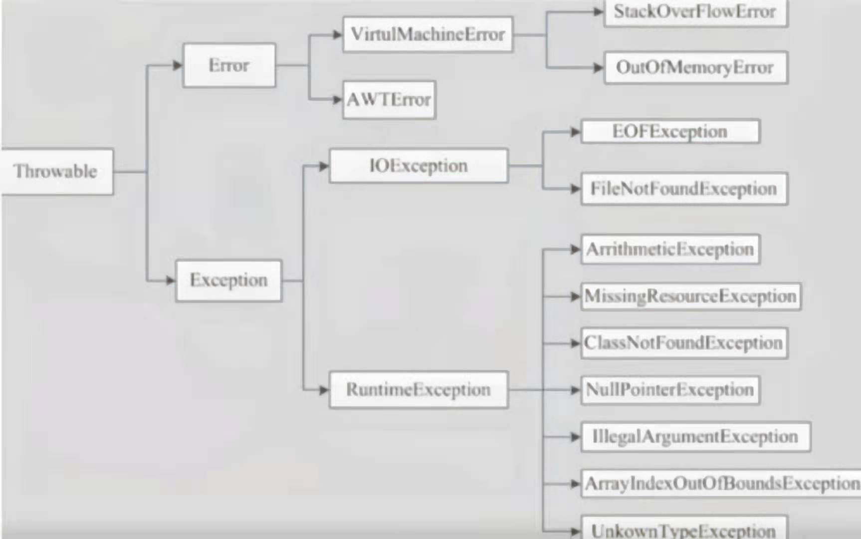 Error类对象有由java虚拟机生成并抛出,大多数错误与代码编写者所执行的操作无关