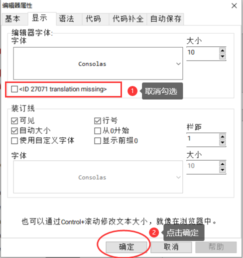 点击【工具】-->>选择【编辑器选项】-->>选择【显示】-->>取消勾选“<ID...>” -->>点击【确定】,保存上述操作