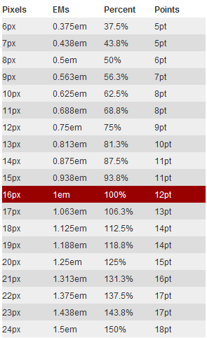 在Web中使用什么单位来定义页面的字体大小,至今天为止都还在激烈的争论着,有人说PX做为单位好,有人说EM优点多,还有人在说百分比方便,以至于出现了CSS Font-Size: em vs. px vs. pt vs. percent这样的PK大局。不幸的是,仍然有不同的利弊,使各种技术都不太理想,但又无法不去用。真是进也难,退也难呀。