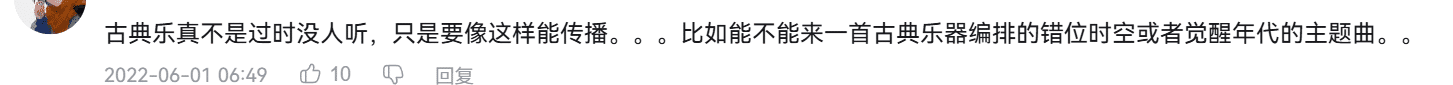 后面打开他们在社交平台上的若干爆款视频,才逐渐理解他们的逻辑:出圈。音乐文学化是为了让大众有回想的余地,大编制和激烈的配器展示是为了给所有人一个直观印象“民乐的每件乐器都有其独特的魅力,且合作起来能够非常震撼人心”,曲子结构不完整是为了给曲间的表演和剧情让步。
