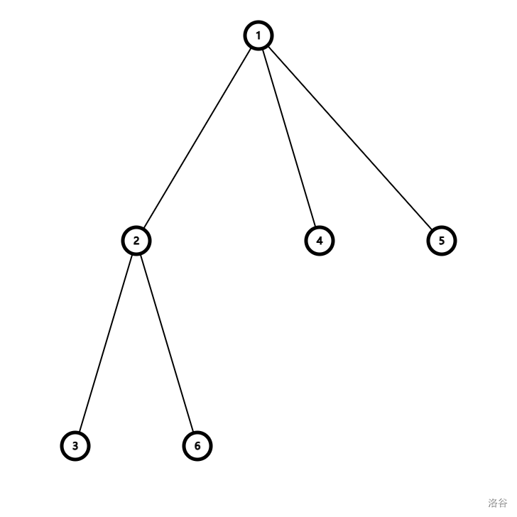 这棵树的括号序就是:1 2 3 3 6 6 2 4 4 5 5 1。