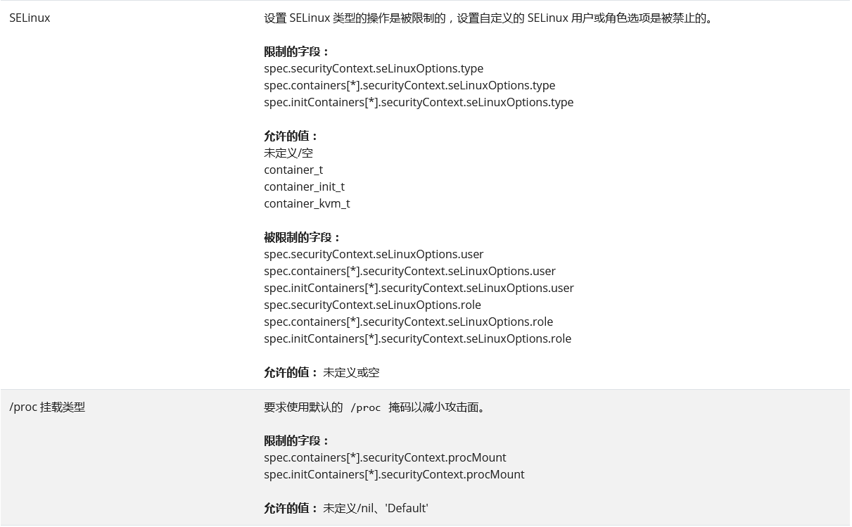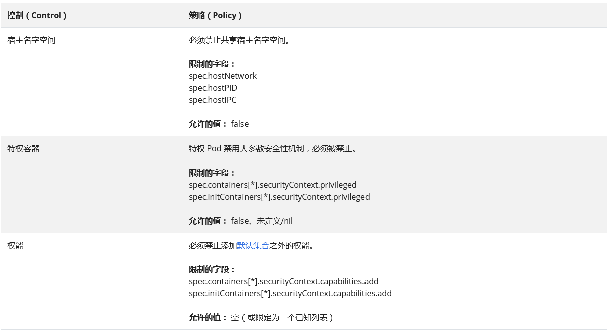 参考:https://kubernetes.io/zh/docs/concepts/security/pod-security-standards/