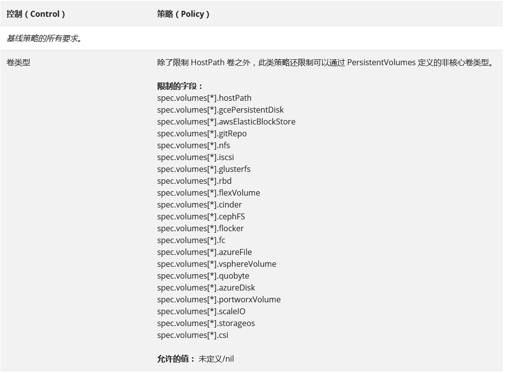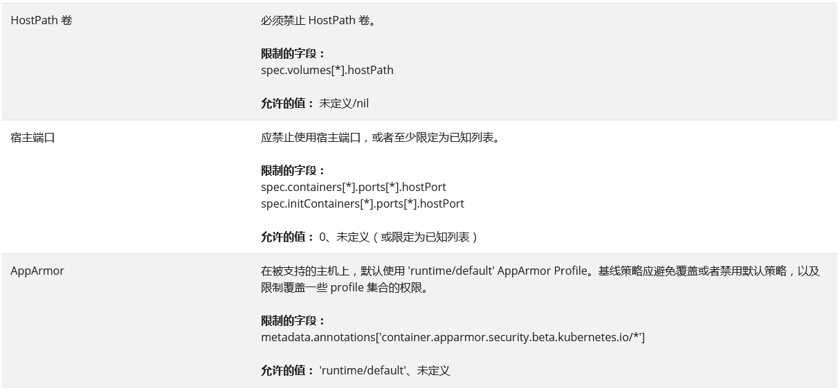 Baseline 策略的目标是便于常见的容器化应用采用,同时禁止已知的特权提升。 此策略针对的是应用运维人员和非关键性应用的开发人员。 下面列举的控制应该被实施(禁止):