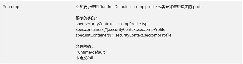seccomp.security.alpha.kubernetes.io/allowedProfileNames: 'docker/default,runtime/default'