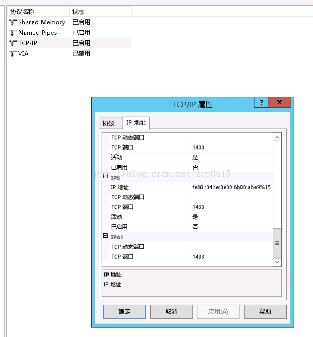 7、拉到最下面IPAll框,将TCP端口设置为1433