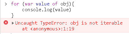 1 for (var value of obj){} × obj is not iterable (obj不是可遍历对象)