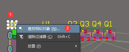 选中其中一个丝印,右键 - 查找相似对象
