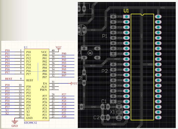 - 2.2 用这个十字叉,在原理图中任意选择一个元件后,就可以找到元件在PCB中对应的封装;