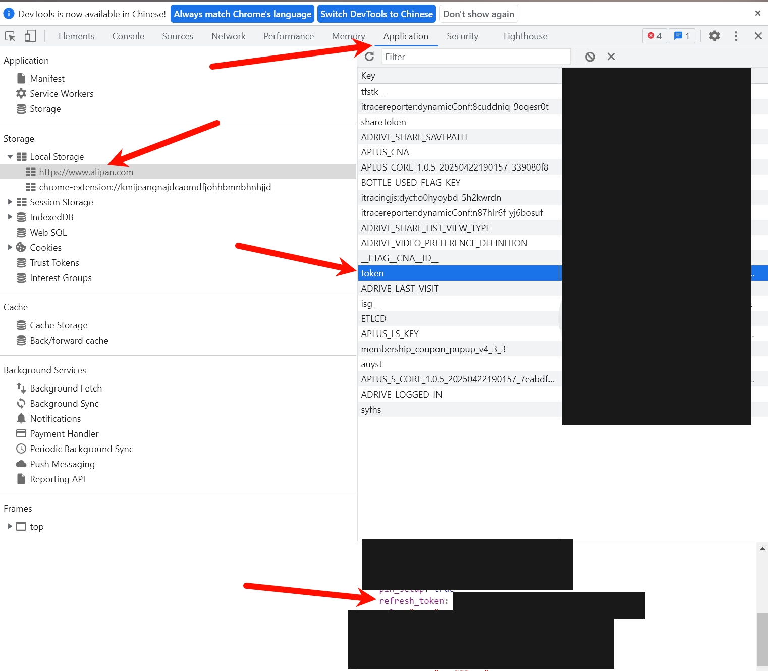 继续根据菜单提示继续下一步到提示:输入你的 阿里云盘 Token(32位长)就是获取refresh_token