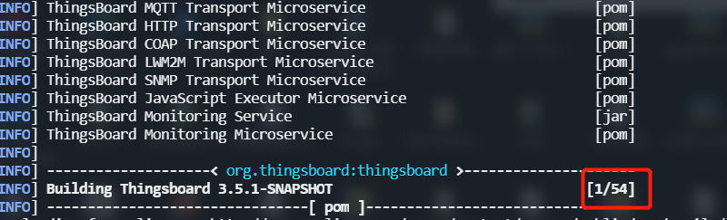 可以看到 一共有54个模块需要安装,比较容易出错的是编译前端,后端的话基本都是拉取jar网络不是太差都没问题的,耐心等待