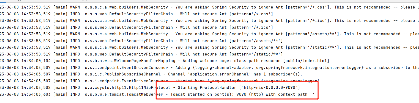 用过springboot框架都知道,显示这个表示已经启动成功了,我这里使用的是9090端口,默认应该是8080的,接下来我们访问http://localhost:9090,由于我之前已经访问过所以直接就进入首页了